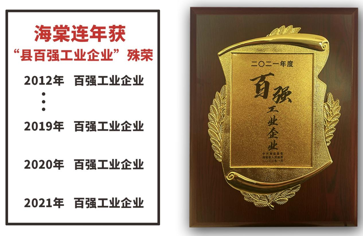 嘉興海棠電子再次獲得“縣工業(yè)百強企業(yè)”殊榮。這是海鹽從2012年開始公開發(fā)布百強工業(yè)企業(yè)名單的第10個年頭。嘉興海棠電子也是從2012起,已連年獲得“縣工業(yè)百強企業(yè)”的榮譽。