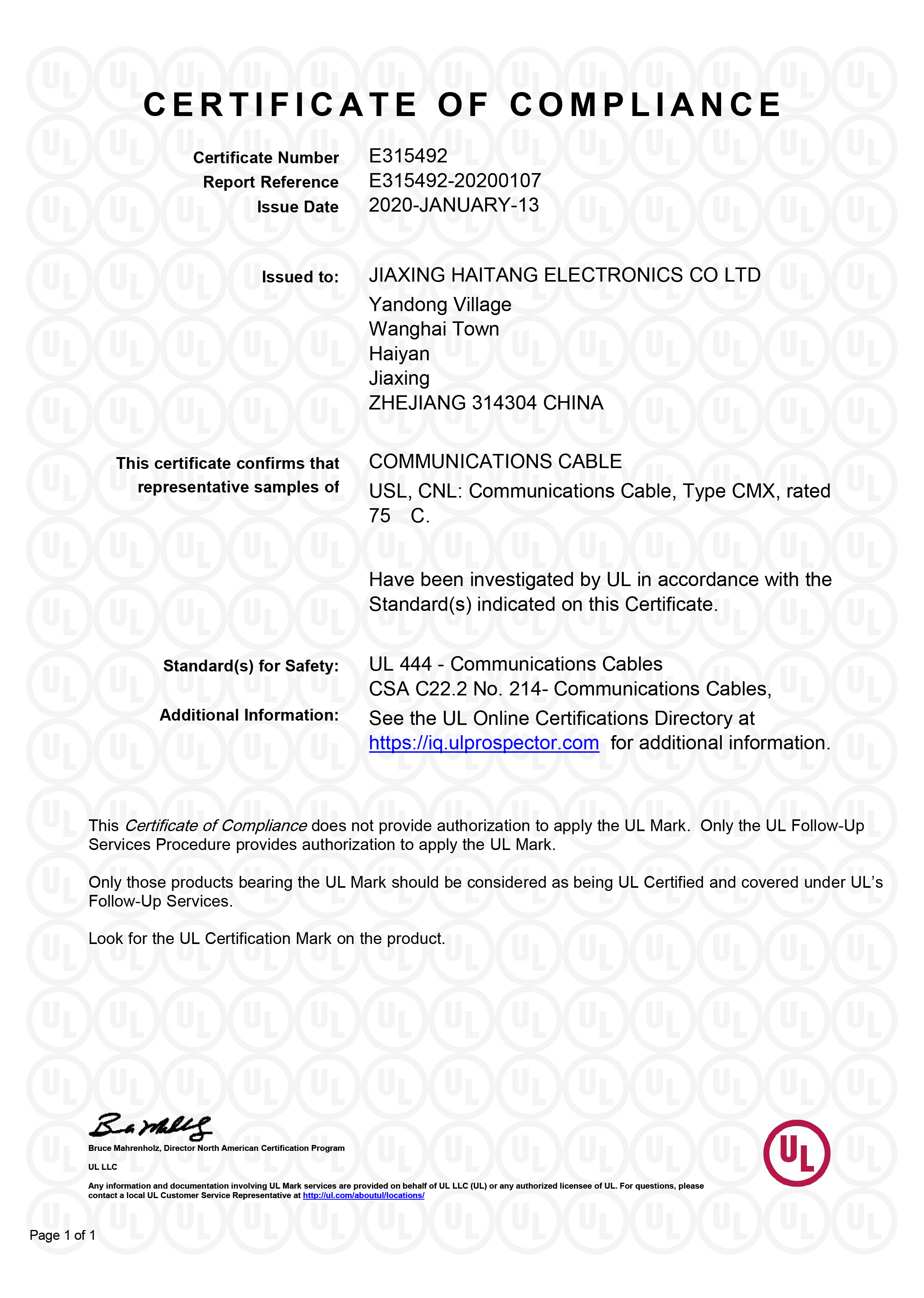 Lan Cable-E315492 UL認(rèn)證