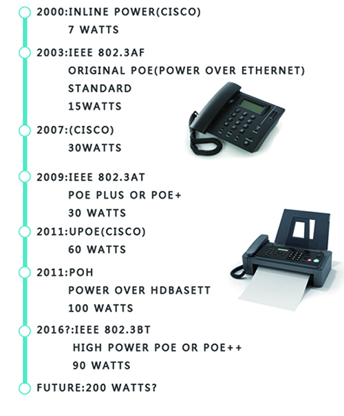 比如我們家用普通固定電話,不需要額外電源,即使家里停電能撥打電話,因為電話線不僅可以傳輸話音信號,也負(fù)責(zé)給電話機(jī)供電(智能電話由于功率加大,有時也需要額外的電源)。由此POE(以太網(wǎng)供電)技術(shù)應(yīng)運而生。