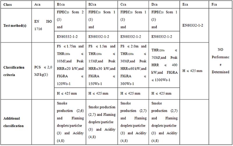 嘉興海棠電子目前產(chǎn)品支持的CPR等級(jí)表: