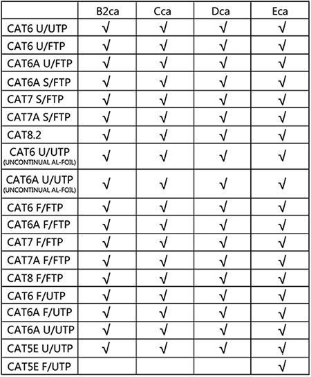 嘉興海棠電子目前除開CAT5E F/UTP產(chǎn)品,超五類網(wǎng)線至八類網(wǎng)線各規(guī)格都支持B2ca、Cca、Dca、Eca每個(gè)等級(jí)。